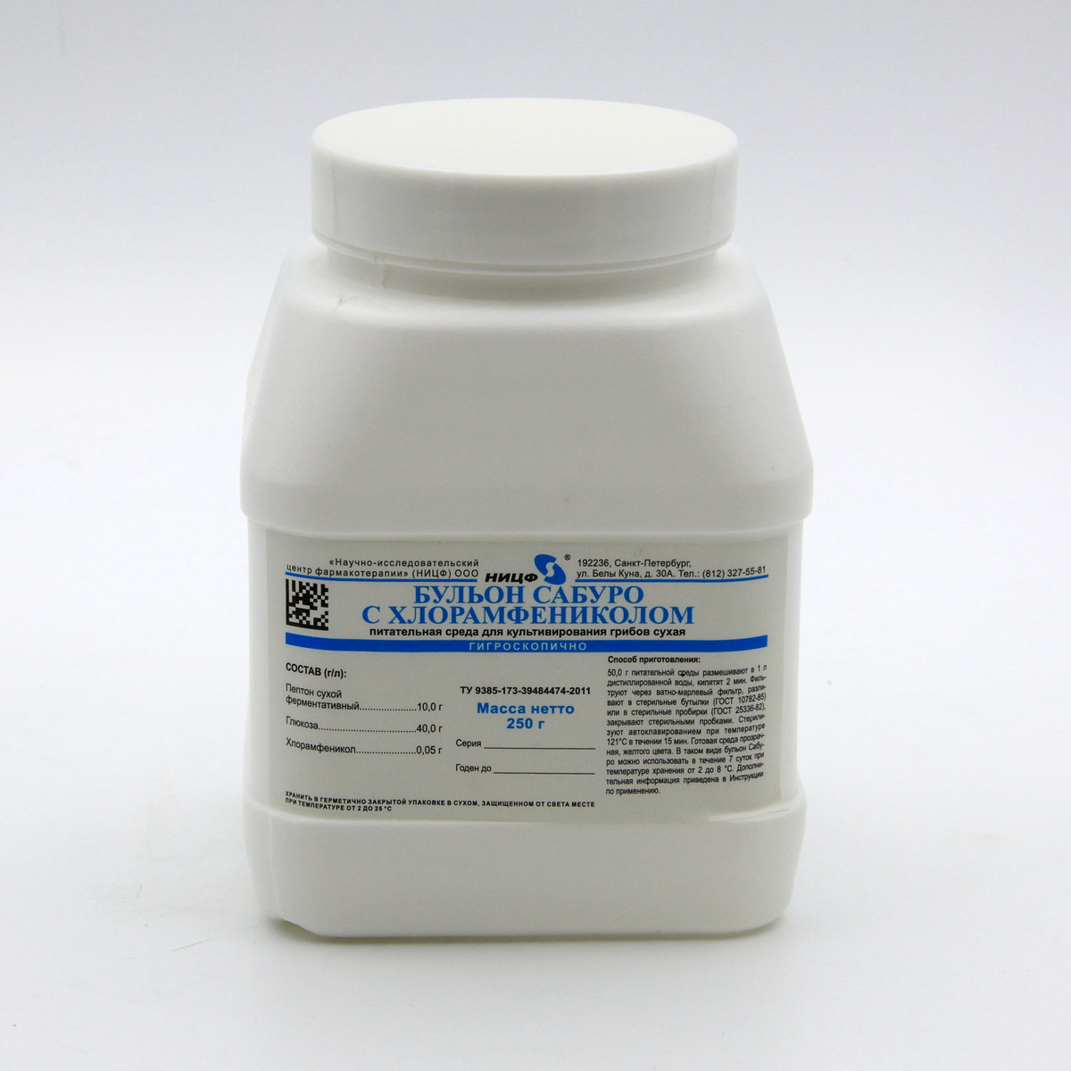 Питательная среда для культивирования грибов сухая. Бульон Сабуро с хлорамфениколом сухой. 0,25 кг.