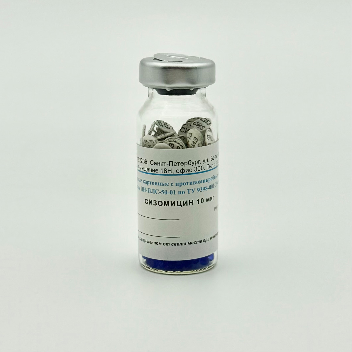 Диски индикаторные картонные с противомикробными лекарственными средствами ДИ-ПЛС-50-01 с сизомицином 10 мкг № 100