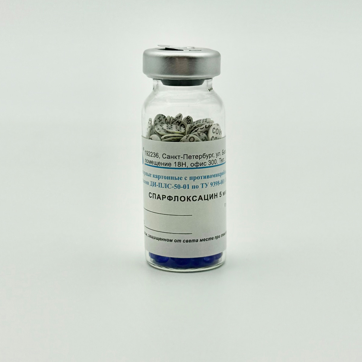 Диски индикаторные картонные с противомикробными лекарственными средствами ДИ-ПЛС-50-01 с спарфлоксацином 5 мкг № 100