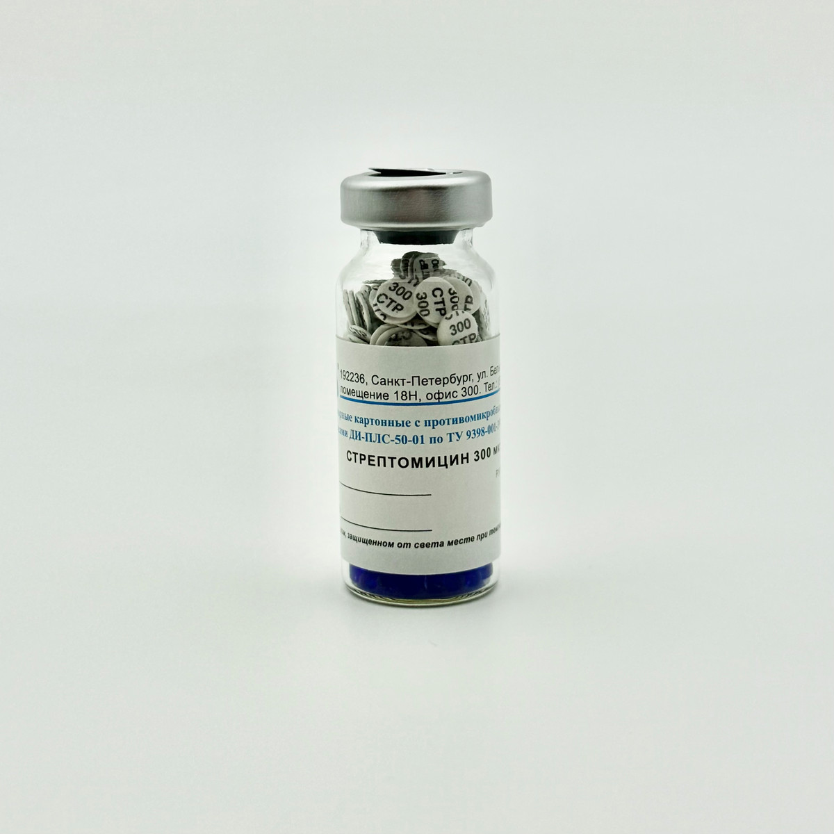 Диски индикаторные картонные с противомикробными лекарственными средствами ДИ-ПЛС-50-01 со стрептомицином 300 мкг № 100