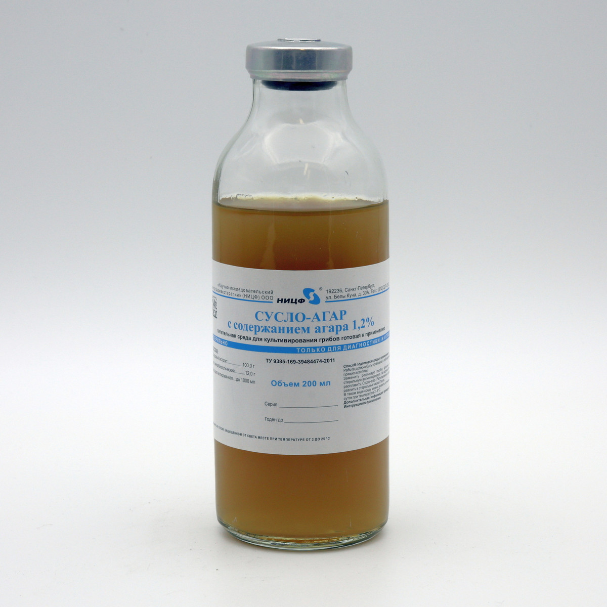 Сусло-агар для культивирования грибов, 1,2 % агара, готовый к применению. фл. 200 мл.