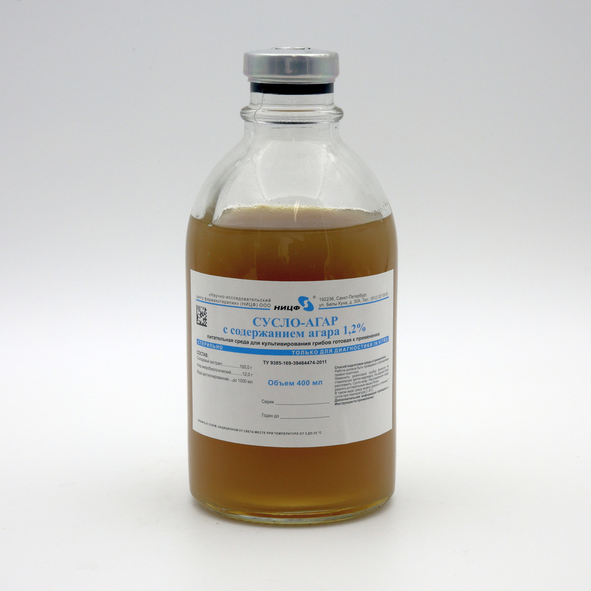 Сусло-агар для культивирования грибов, 1,2 % агара, готовый к применению. фл. 400 мл.