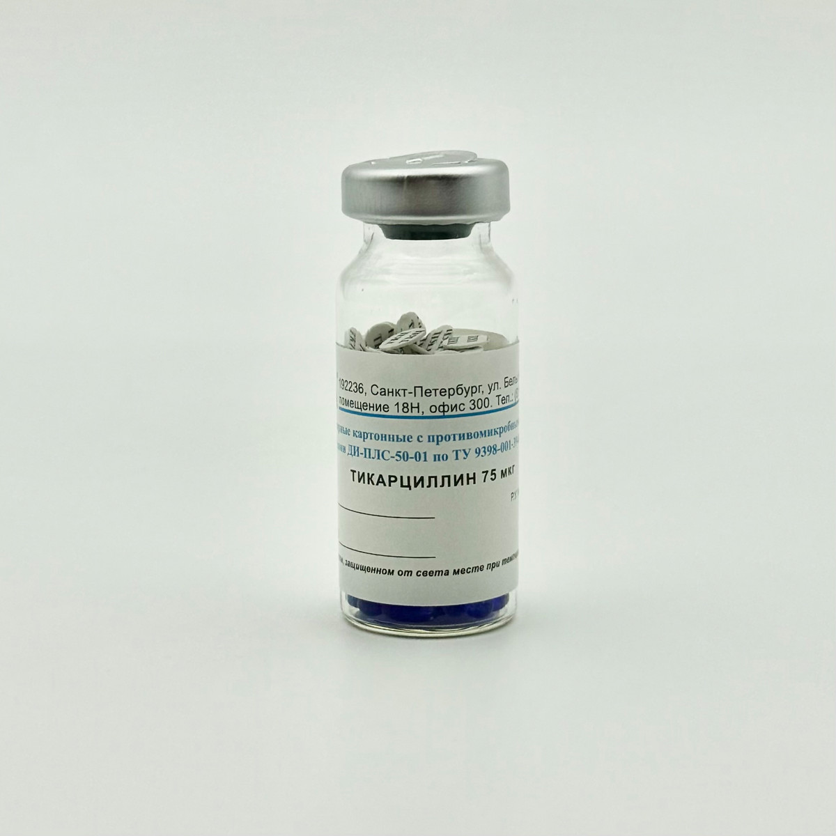 Диски индикаторные картонные с противомикробными лекарственными средствами ДИ-ПЛС-50-01 с тикарциллином, 75 мкг № 100
