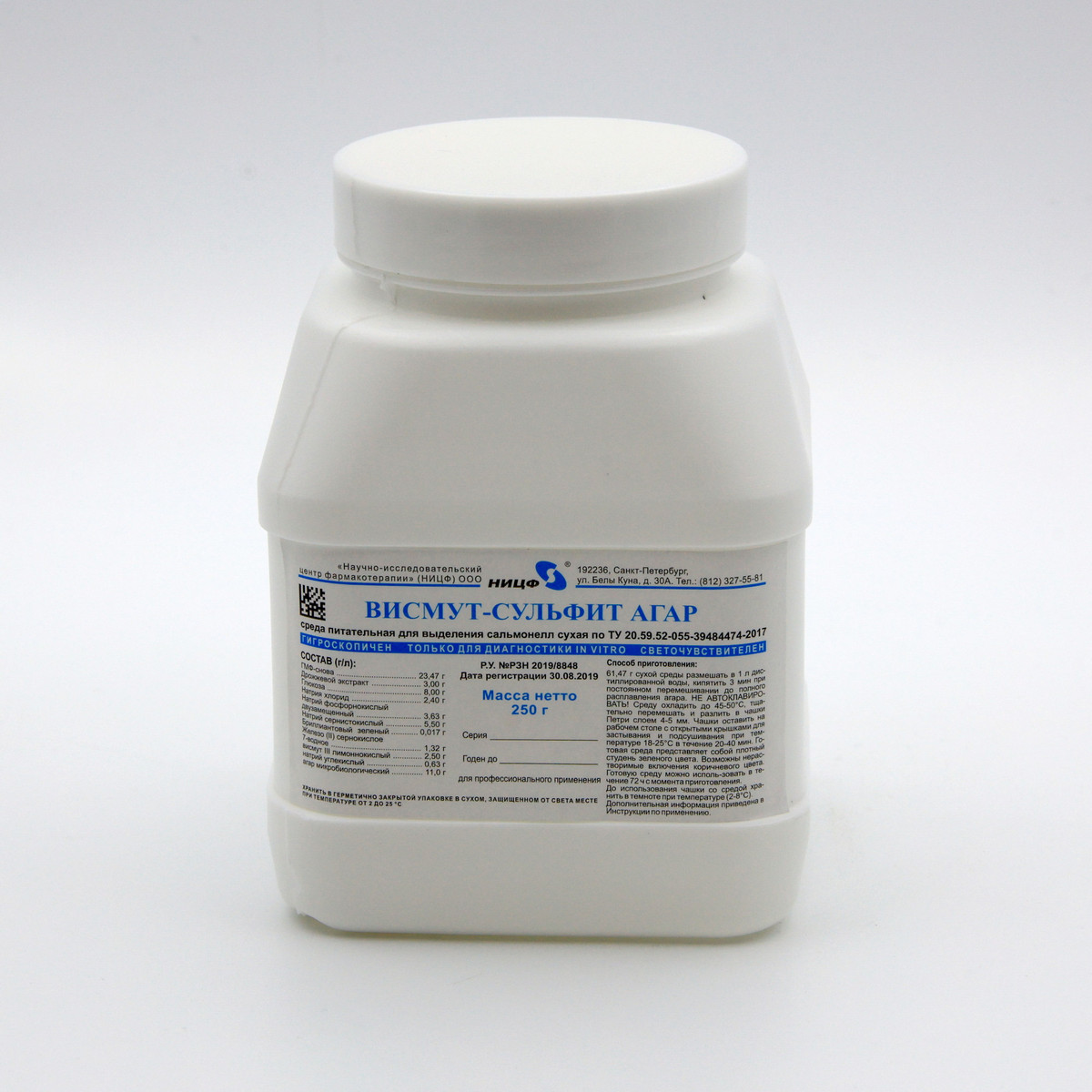 Среда питательная для выделения сальмонелл сухая "Висмут-сульфит агар" 0,25 кг