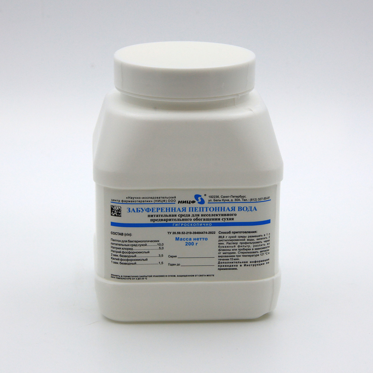 Забуференная пептонная вода предназначена для предварительного неселективного накопления бактерий, в частности, патогенных энтеробактерий из пищевых продуктов и другого материала, а также может быть использована в качестве разбавителя для гомогенизации проб пищевых продуктов в микробиологических анализах. Преимуществом забуференной пептонной воды является наличие двух классических разбавителей, применяемых для пищевых образцов: она сочетает свойства пептонной воды (ревитализация микроорганизмов) и фосфатного буфера (нейтрализация изменений pH).